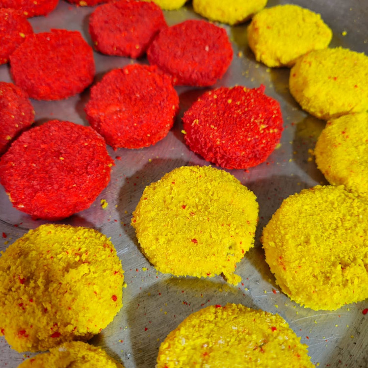 ناگت گوشت خالص که میگم یعنی بدون سویا و ارد و اینجور چیزا فقط سینه مرغ + پیاز + ادویه + پنیرپیتزا !