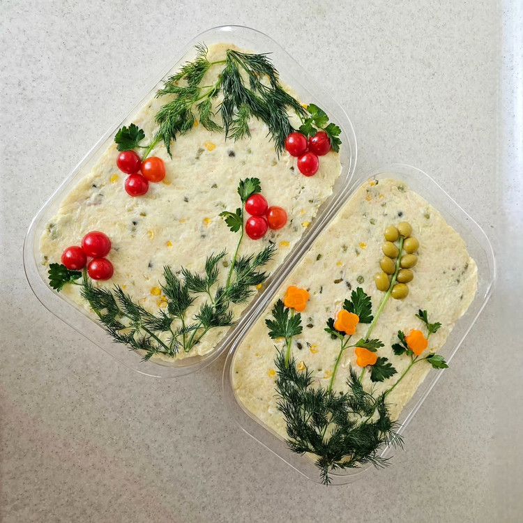 میدونین همه غذاها فقط به اندازه سفارشهای ثبت شده تولید میشن؟ و غذاهایی مثل الویه و سالادماکارونی حتی یک روز هم نمیمونه؟ همون روزی که میخوایم بفرستیم تولید میکنیم. الویه رو با مرغ درست میکنیم و میتونین مثل این عکس کم سس سفارش بدین